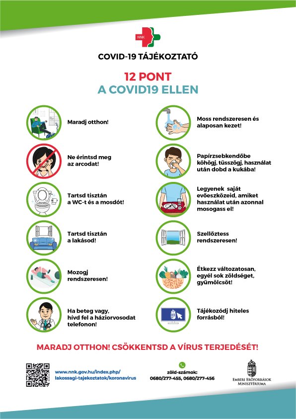 Tájékoztató anyagok COVID-19 járványügyi helyzettel kapcsolatban2020. 03. 19., Csütörtök, 16:01
