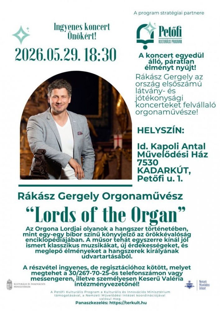 "Lords of the Organ" - Rákász Gergely orgonaművész műsora2026. 05. 29., Péntek, 18:30